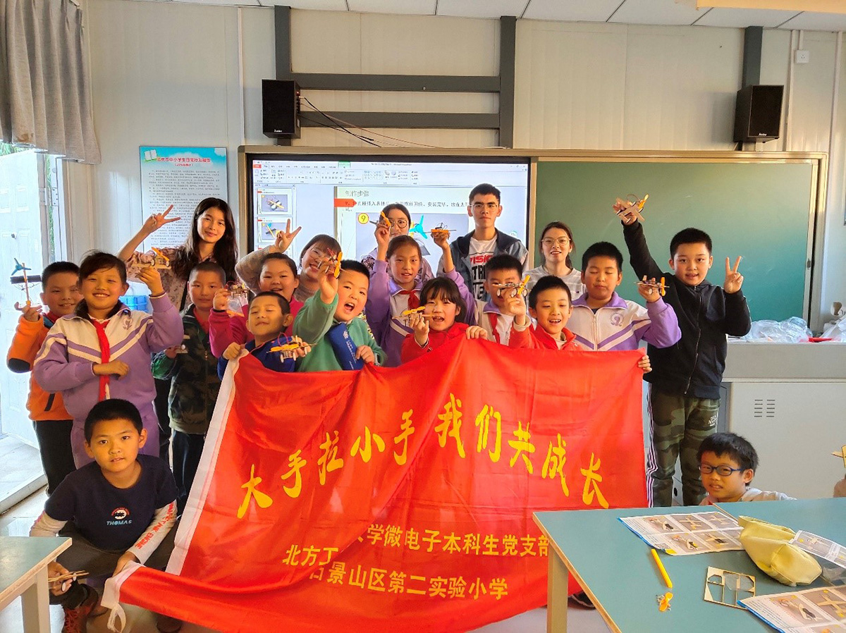 自2013年微电本科员工党支部与石景山区第二实验小学党支部成立“老员工志愿服务基地”以来,共同开展了以“大手拉小手,我们共成长”为主题的系列共建活动。员工党员充分发挥主动性和创造性,集思广益、开拓创新,结合本专业特点,为小员工们带去知识和快乐,提高他们动手实践的能力,激发他们对科学的兴趣与探索。共建活动的开展,也使员工党员的团队协作能力得到了提高,极大提升了他们的社会责任感、服务意识和服务能力。