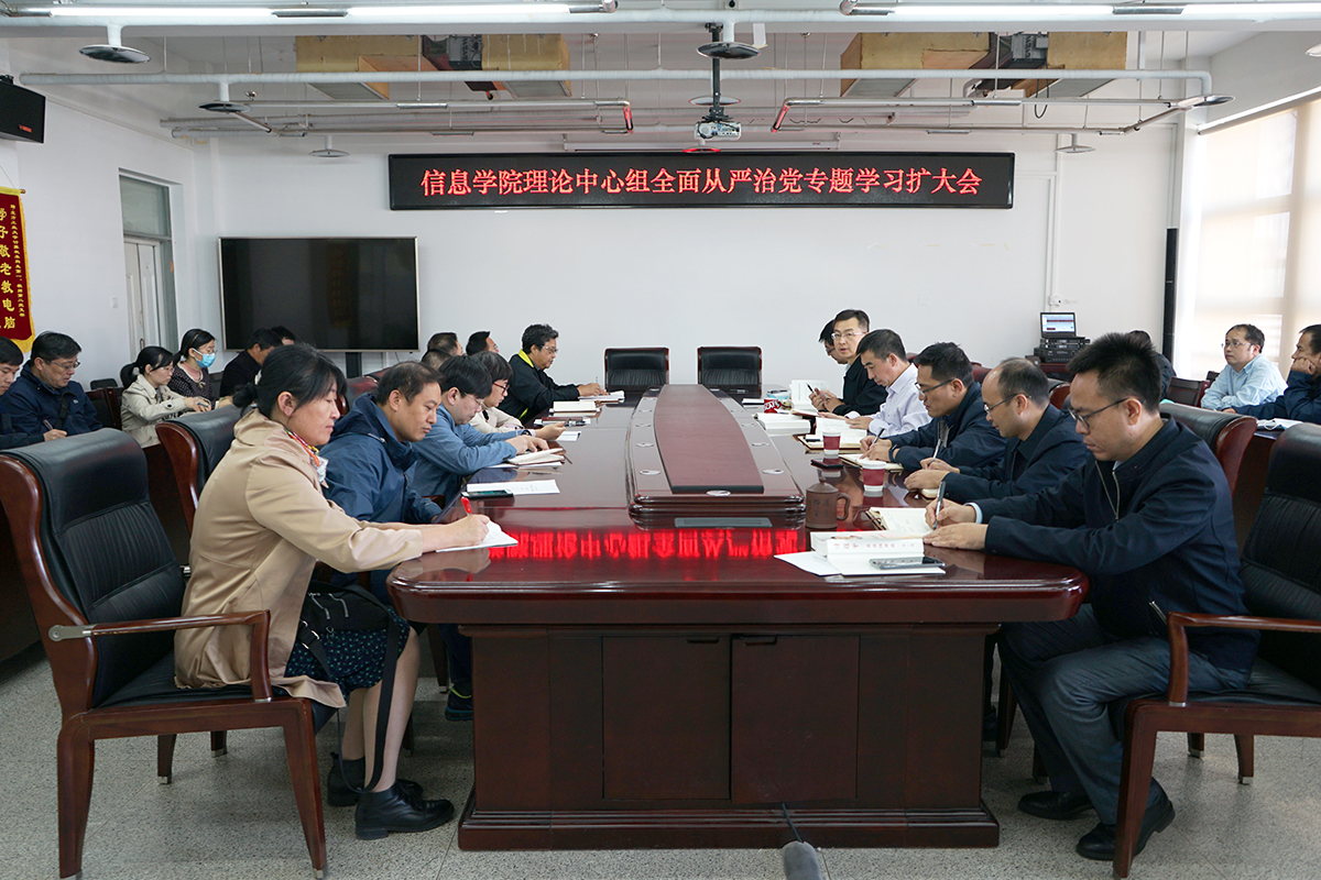 10月12日,公司党委理论中心组成员在瀚学楼1014会议室召开公司理论中心组集体学习(扩大)会,专题学习《习近平谈治国理政》第三卷第19专题“不忘初心、牢记使命,把党的自我革命推向深入”中关于“全面从严治党”的系列文章。公司党委理论学习中心组巡听工作小组成员、公司各系(中心)主任、各学科责任教授和教工党支部书记列席会议。会议由公司党委书记王月海主持。