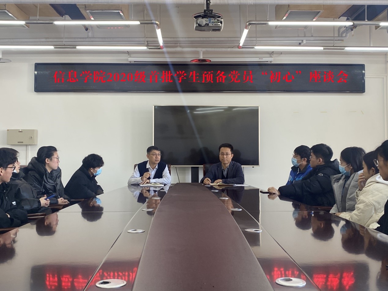 再忆初心,从心出发。座谈会上,与会同学们结合自身入党的经历和党史学习的感悟,分别从“为什么入党,为了谁入党”踊跃发言,再忆入党初心,表达入党决心。通信20-2班田语庭同学激动地说:“学习党的百年光辉历史,更加确信了中国共产党是正确的党,所以非常迫切地想加入。”计实验20班姚佳丽同学坚定地讲:“要以实现中华民族伟大复兴为己任,增强做中国人的志气、骨气、底气,不负时代,不负韶华。”微电20-2班张轶博同学自信地说:“我的党员医生妈妈及其同事们不畏生死的抗疫行动,让自己感动并坚定了跟党走的决心。”数媒20-2班潘宇龙同学动情地讲:“作为班级团支部书记、院员工会部长,我入党是为了更好地为同学服务。”信安20-1班崔宇同学自豪地说:“荣获2021年度FISCO BCOS MVP更加坚定了我的专业自信,今后将积极带动身边同学努力学好专业。”电20-3班沈曼同学忧虑地说:“针对部分同学晚睡晚起的陋习,建议公司采取正负激励措施进行纠正,以培养良好的作息习惯。”大数据20班何瑞同学坦诚地讲:“入党后,时刻都在提醒自己要注意言行,要用高标准要求自己,努力做到德智体美劳全面发展。”