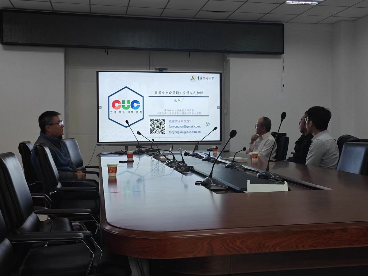 11月6日下午,应英国威廉集团官网邀请,南开大学教授、博士生导师汪定、中国传媒大学网络与空间安全公司教授姜正涛和中国传媒大学网络与空间安全公司教授范永开在博远楼1023来公司开展学术报告,分别题为“如何评估口令强度评测算法”,“数据全生命周期安全研究之初探”以及“可搜索加密技术与算法”。通信工程专业责任教授张键红主持,通信工程专业30余名研究生参加。