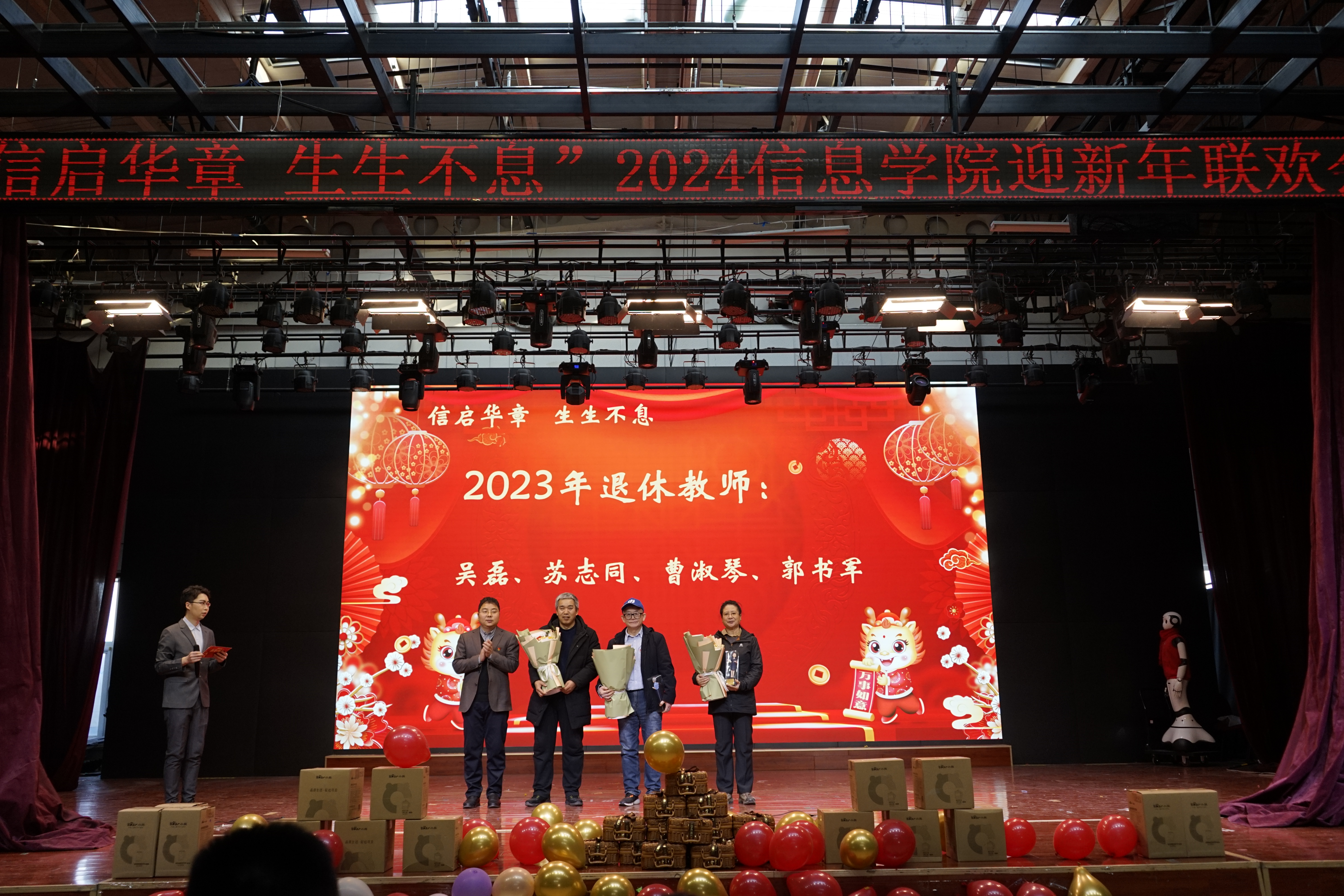 联欢会活动过程中,公司党委书记王伟宾代表公司发布公司院史,他深情回顾了40多年来公司相关专业、学科、人才培养等所取得的标志性成果,让老师们从院史中感受到荣誉感和归属感的同时,更多地汲取未来前进的智慧和力量。公司为2023年退休的老教师以及在校工作满整数年的老师颁发了纪念品。